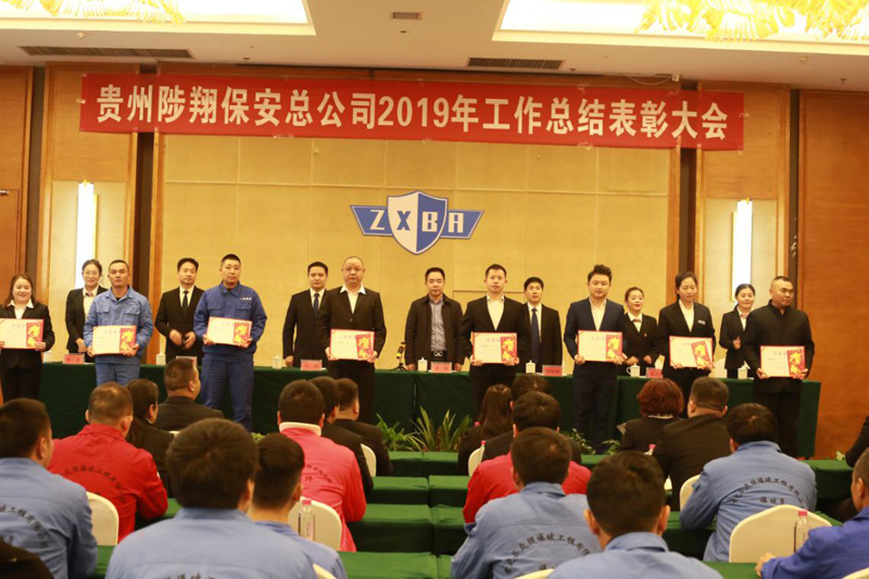 2020年1月20日下午,貴州陟翔保安總公司2019年度工作總結(jié)表彰大會在貴定縣御庭酒店會議室召開?偣竟蓶|李鵠、羅仕銀、總經(jīng)理馮波、副總經(jīng)理陳春生、余艷、財務(wù)總監(jiān)楊長碧出席會議,各分公司、項目部、培訓(xùn)學(xué)校負(fù)責(zé)人、總公司全體人員、分公司員工代表、受到表彰的先進單位代表和先進個人參加會議。總公司常務(wù)副總經(jīng)理張小慶主持會議。