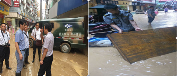 銅仁本部負(fù)責(zé)人陳葉接到電話報(bào)告后,第一時(shí)間率領(lǐng)應(yīng)急人員趕赴一線,與市公安局治安支隊(duì)吳支隊(duì)長(zhǎng)、市工行吳行長(zhǎng)一同到現(xiàn)場(chǎng)指揮抗洪救災(zāi)工作。