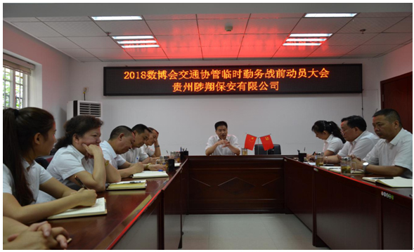 2018中國國際大數(shù)據(jù)產(chǎn)業(yè)博覽會于5月26日至29日在貴陽舉行,作為貴州保安行業(yè)的領(lǐng)軍企業(yè),貴州陟翔保安有限公司承接了貴陽數(shù)博會園區(qū)500名交通協(xié)管臨時勤務(wù),為確保此次臨時勤務(wù)的順利實施和完成,5月18日下午,總公司全體員工、保安公司全體領(lǐng)導(dǎo)及大隊長在總公司會議室召開了2018數(shù)博會交通協(xié)管臨時勤務(wù)戰(zhàn)前動員大會,會上,總經(jīng)理陳春生同志對此次臨時勤務(wù)作出重要指示,并對此次臨時勤務(wù)做了統(tǒng)一安排部署。數(shù)博會勤務(wù)領(lǐng)導(dǎo)小組組長由總公司總經(jīng)理馮波擔(dān)任,指揮組組長由保安公司總經(jīng)理陳春生擔(dān)任,同時還成立了協(xié)調(diào)組、后勤保障組,新聞報道組等,對所有參與人員進行明確分工。